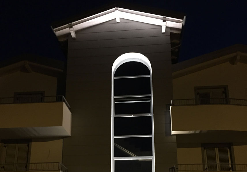 Questo progetto nasce dall’intenzione di realizzare una Villa in concezione abitativa moderna, antisismica e tecnologicamente avanzata, partendo dalla contestualizzazione dell’intervento a pochi passi dal centro storico, ma immerso nella pace e nel verde della zona residenziale del paese. La costruzione è realizzata in classe energetica A+ con sistema di riscaldamento a pavimento, pannelli solari per il risparmio diretto del 50% del fabbisogno di acqua calda sanitaria, pannelli fotovoltaici, ricircolo con areazione forzata, sistemi costruttivi che vertono al recupero delle acque piovane e impianti tecnologicamente avanzati di gestione e controllo in domotica, il tutto per razionalizzare il più possibile i consumi.